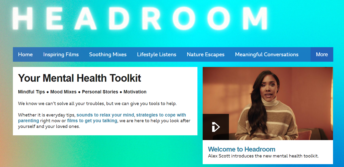 BBC Headroom –Â https://www.bbc.co.uk/programmes/articles/YfRzhXDKSZQxFVn30TlXBj/your-mental-health-toolkitÂ