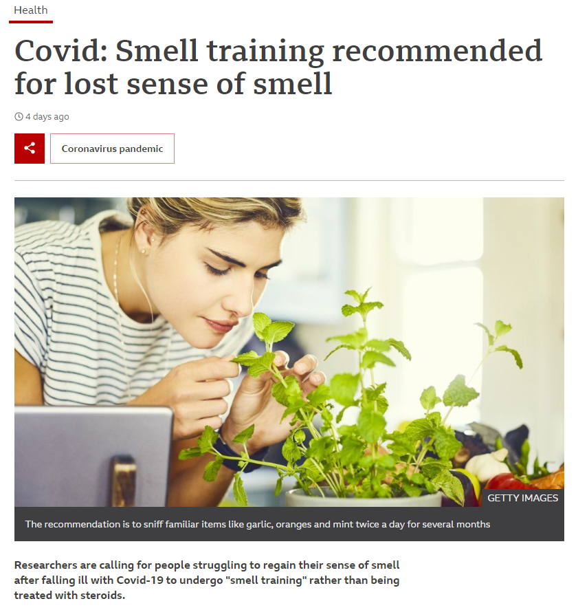 Covid: Smell training recommended for lost sense of smell
