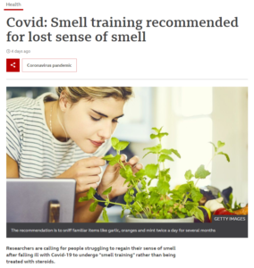 SmellTaste’s Director of Medical and Research Affairs Professor Carl Phillpot sat down with the BBC and discussed how smell training (see here) could benefit people that have experienced smell loss due to Covid-19. To read the full article, please click here – https://bbc.in/3gKz1r7