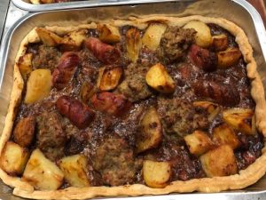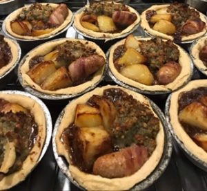 Pour in the casserole and top with the roast potatoes, stuffing and pigs in blankets and cook in the oven at 180 C for about 30 mins, until the pastry is cooked and voila – the perfect roast dinner in a pie!
