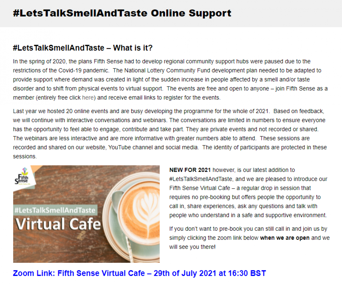 #LetsTalkSmellAndTaste Virtual Café Drop-In Session On The 29th Of July 2021