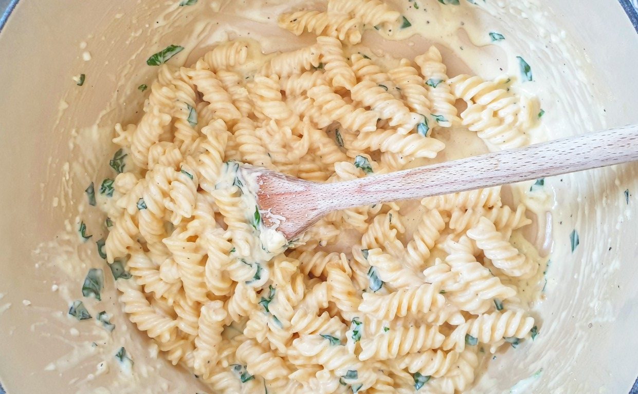 This easy chicken pasta recipe uses 4 ingredients, is quick and super delicious! No cream, no dairy just a creamy and easily customizable chicken pasta recipe.